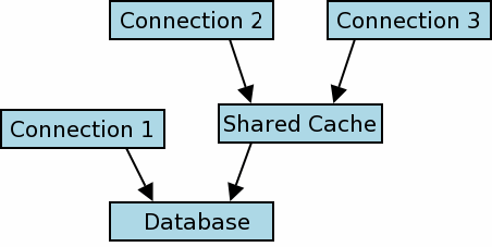 Figure 1 depicts an example runtime configuration where three database connections have been established. Connection 1 is a normal SQLite database connection. Connections 2 and 3 share a cache The normal locking protocol is used to serialize database access between connection 1 and the shared cache. The internal protocol used to serialize (or not, see "Read-Uncommitted Isolation Mode" below) access to the shared-cache by connections 2 and 3 is described in the remainder of this section.
